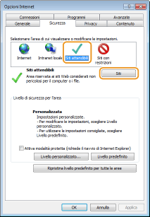 Selezionare [Siti attendibili] nella scheda [Sicurezza] e fare clic su [Siti].