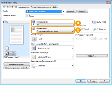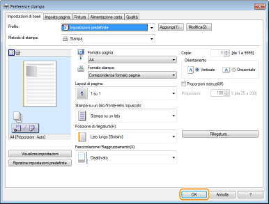 È possibile specificare con semplicità il layout di pagina, la posizione della rilegatura e così via agendo in maniera del tutto intuitiva nell'immagine di anteprima. Per ulteriori informazioni, fare clic su [?] nella schermata del driver stampante.