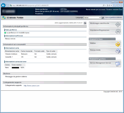 È possibile immettere "<nome host della macchina>.<nome dominio>" invece di "indirizzo IP della macchina" (esempio: https://my_printer.example.com/).