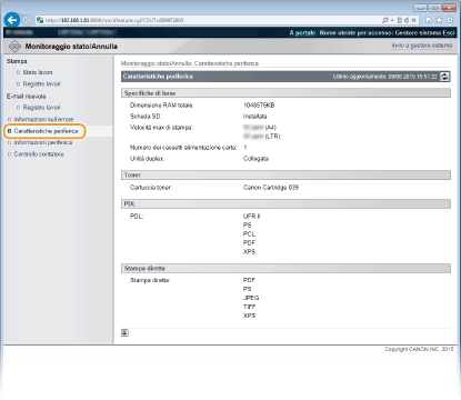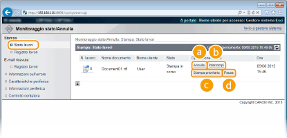 Fare clic su [N. lavoro] sui documenti in pausa e i documenti protetti per visualizzare informazioni dettagliate. È possibile controllare nome utente e numero di pagina del documento stampato.