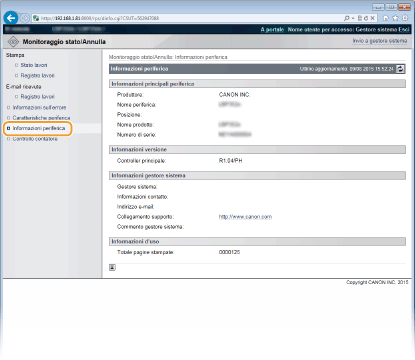 [Impostazioni gestione] nella pagina [Impostazioni/Registrazione] (Impostazione della password del Gestore sistema).