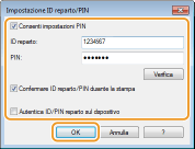 Selezionare la casella di controllo per visualizzare la finestra a comparsa [Confermare ID reparto/PIN] ogni volta che si stampa dal computer.
