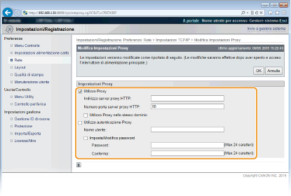 Selezionare la casella di controllo [Utilizzo Proxy] e specificare le impostazioni richieste.