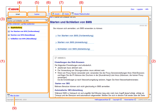 Dies ist die Inhaltsliste der Kapitel. Wenn Sie auf ein Thema klicken, wird die Erläuterung auf der Themenseite angezeigt.