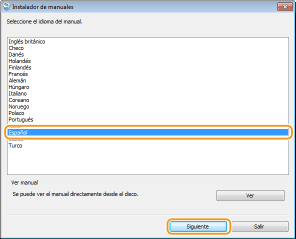 Seleccione el idioma y haga clic en [Mostrar] en "Mostrar manual".