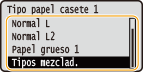 <Tipo papel casete 2> a <Tipo papel casete 5> aparecerán cuando esté instalado el alimentador de papel o el depósito de papel.