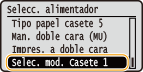 para seleccionar <Selec. mod. Casete 1>, y pulse