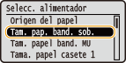 para seleccionar <Tam. pap. band. sob.>, y pulse