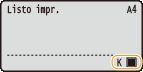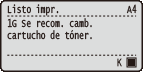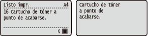 Si aparece el mensaje <Cartucho de tóner a punto de acabarse.>, la impresión se detendrá temporalmente. Para reanudar la impresión, pulse