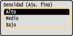 Seleccione <Densidad (Aju. fino)>, y pulse