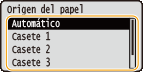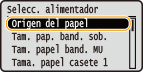 para seleccionar <Origen del papel>, y pulse