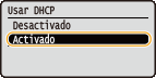 Seleccione <Usar DHCP>, <Usar BOOTP> o <Usar RARP> y pulse