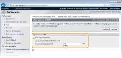 Si utiliza RAW para imprimir, seleccione la casilla de verificación. Si no lo usa, quite la marca de la casilla de verificación.