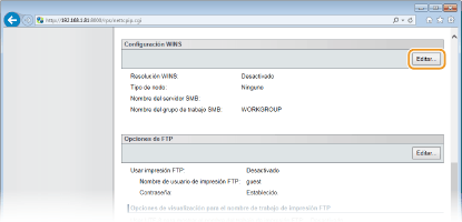 Si la dirección IP del servidor WINS se obtiene desde un servidor DHCP, la dirección IP obtenida sustituye a la dirección IP introducida en el cuadro de texto [Dirección de servidor WINS].