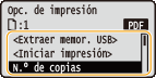 Puede imprimir archivos de imagen (PDF, TIFF, JPEG y XPS) almacenados en un dispositivo de memoria USB conectándolo directamente al equipo. Con esta función, puede imprimir sin utilizar un ordenador.