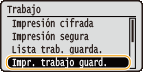 para seleccionar <Impr. trabajo guard.>, y pulse