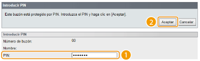 Al aparecer la pantalla que se muestra a continuación, introduzca el PIN y haga clic en [Aceptar].