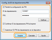 Marque la casilla de verificación para que se muestre la pantalla emergente [Confirmar ID de departamento y PIN] cada vez que imprima desde un ordenador.