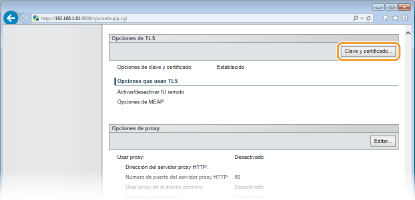 Haga clic en [Clave y certificado] en [Opciones de TLS].