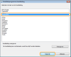 Selecteer de taal en klik op [Volgende].