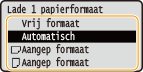 Als u een standaard papierformaat gebruikt nadat u <Automatisch> hebt veranderd in een andere papierformaatinstelling, zet u de instelling terug op <Automatisch>.