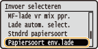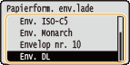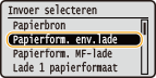 om <Papierform. env.lade> te selecteren en druk vervolgens op