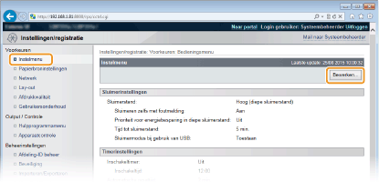 U kunt het apparaat zo instellen dat het automatisch wordt uitgeschakeld als het langere tijd niet wordt gebruikt. U kunt het apparaat ook zo instellen dat het op een specifiek tijdstip wordt uitgeschakeld. Met behulp van deze functies kunt u voorkomen dat het apparaat nutteloos stroom verbruikt als het niet is uitgeschakeld. In de standaard fabrieksinstelling is deze functie ingeschakeld.