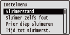 De instellingen van de sluimermodus en hoe het apparaat moet functioneren als er een fout optreedt, staan in een lijst en worden kort toegelicht. Standaardinstellingen worden aangegeven met een dolksymbool (