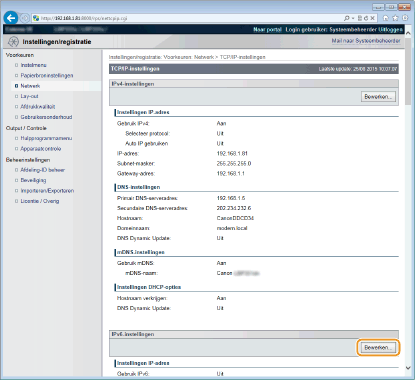 Als u het IP-adres hebt gewijzigd na de installatie van het printerstuurprogrammaMet de procedure voor het veranderen van de TCP/IP poort zoals beschreven in het 'Installatiehandleiding printerstuurprogramma' geeft u de te gebruiken poort nogmaals op.