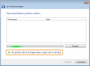 Klik op [De printer die ik wil gebruiken, staat niet in de lijst].