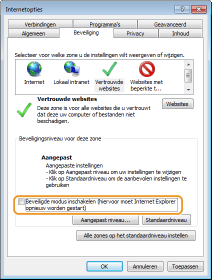 Schakel het selectievakje [Beveiligde modus inschakelen (hiervoor moet Internet Explorer opnieuw worden gestart)] uit als het geactiveerd is.