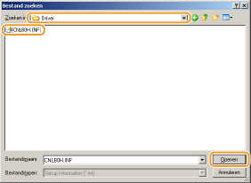 Geef de map op waarin de printerstuurprogramma's zijn opgeslagen, selecteer het INF-bestand en klik op [Openen].