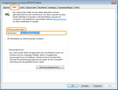 De installatie van de extra stuurprogramma's begint. Wacht tot het tabblad [Delen] opnieuw wordt weergegeven.