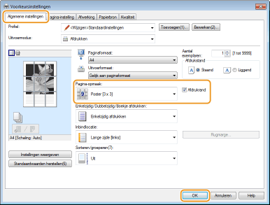 Selecteer bij [Pagina-opmaak] de afmetingen van de poster (bijvoorbeeld, [Poster [2 x 2]])