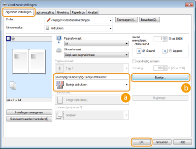 Selecteer [Boekje afdrukken] in [Enkelzijdig/Dubbelzijdig/Boekje afdrukken]