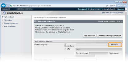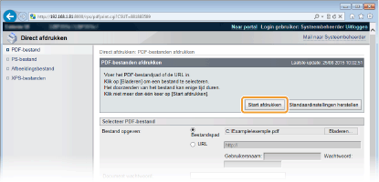 U kunt een bestand vanaf een webbrowser (externe UI) afdrukken zonder het bestand te openen. Bovendien kunt u ook een PDF-bestand afdrukken op het internet, door slechts het internetadres op te geven.