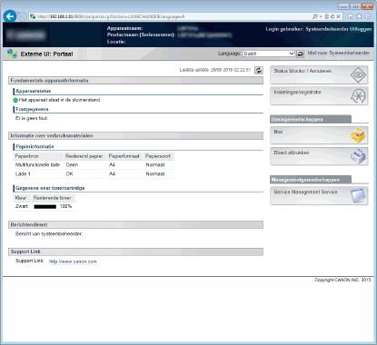 U kunt alle bewerkingen en instellingen van de externe UI uitvoeren. Voer het wachtwoord van de systeembeheerder in [Wachtwoord] in.
