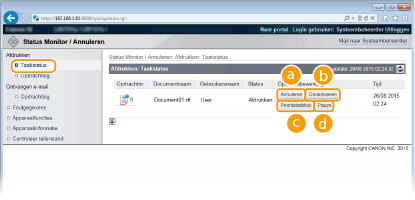 De status van alle afdruktaken wordt weergegeven, ongeacht de instellingen van het afdelings-ID-beheer.