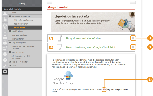 Klik her for at få vist oplysninger om, hvordan e-Manual vises, hvordan man søger og andre oplysninger.