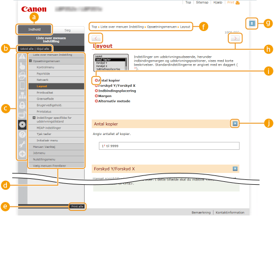 Klik på [Udvid alle] for at få vist underafsnit for alle emner. Klik på [Skjul alle] for at få skjule underafsnit for alle emner.