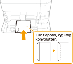 Sørg for at udjævne eventuelle krøllede kuverter, før du ilægger dem. Vær også opmærksom på retningen af kuverterne, og hvilken side der vender opad. Bemærk, at der ikke kan lægges kuverter i papirskuffen.