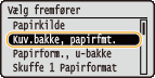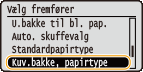 til at vælge <Kuv.bakke, papirfmt.>, og tryk på