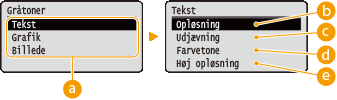 Asterisk (*)Indstillinger, der er markeret med asterisk (*), vises ikke afhængigt af andre indstillinger.