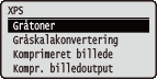 Alle indstillinger om XPS-filer, der er tilgængelige til direkte USB-udskrivning og direkte udskrivning, vises med korte beskrivelser. Standardindstillingerne er angivet med en daggert (