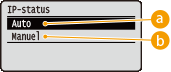 Maskinens IPv4-adresse kan enten tildeles automatisk via en dynamisk IP-adresseringsprotokol, som f.eks. DHCP, eller den kan indtastes manuelt. Hvis maskinen tilsluttes et kabelbaseret LAN, skal du kontrollere, at stikkene på LAN-kablet sættes ordentligt ind i portene (Tilslutning til et kablet LAN).