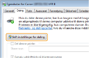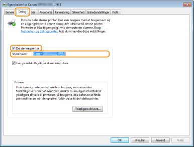 Installeringen af de yderligere drivere starter. Vent, indtil fanen [Deling] vises igen.