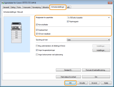 Du kan bruge PCL6-printerdriveren samt UFRII-printerdriveren. De tilgængelige udskriftsindstillinger varierer afhængigt af printerdriveren. Du kan få flere oplysninger ved at klikke på [Hjælp] på hver enkelt skærm for printerdriveren.
