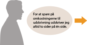 Angiv [2 på 1] som brugerens standardindstilling i printerdriveren. Næste og følgende job vil blive udført, så hver to sider vil blive formindsket og udskrevet på én side. Ændring af standardindstillingerne