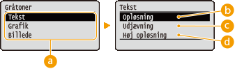 Vælg den billeddatatype, du ønsker at ændre indstilling for. <Tekst> repræsenterer bogstaver og tegn <Grafik> repræsenterer linjer og figurer, og <Billede> repræsenterer billeder, som f.eks. fotografier.