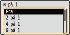 Vælg, om der skal udskrives flere sider på et enkelt ark ved at angive dem i rækkefølge fra øverst til venstre. For at udskrive fire sider på et enkelt ark skal du f.eks. vælge <4 på 1>. Brug